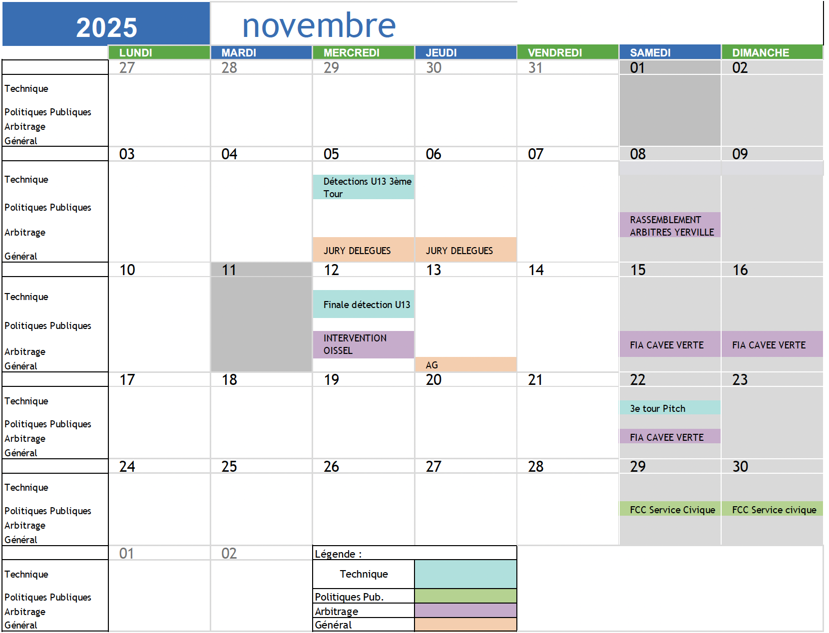 Ce calendrier est mis à jour en fin de mois pour le mois suivant et diffusé à l’ensemble des clubs affiliés via cet article.