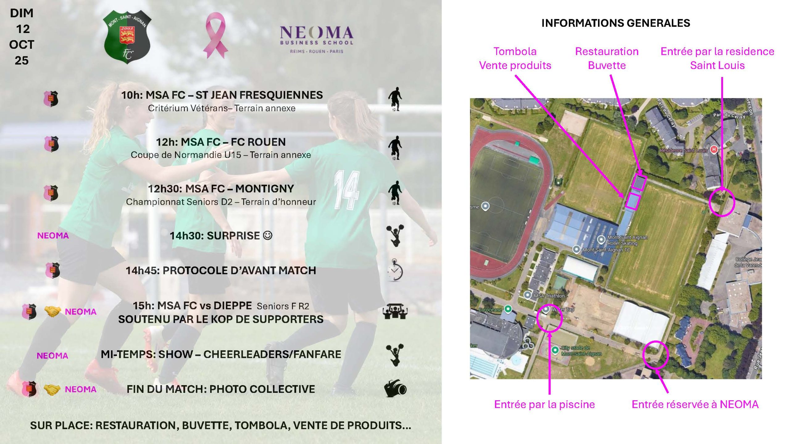 Le club organise un événement le 12 octobre 2025 sur les installations du Mont Saint Aignan FC (complexe sportif des coquets) de 10h à 17h.