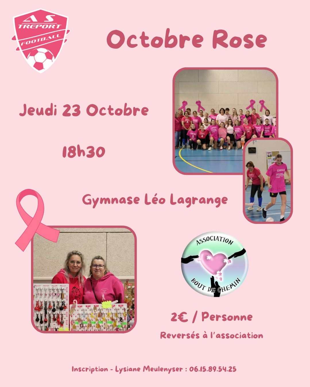 - Chaque club participant pourra contribuer à la hauteur de 30€ somme intégralement reversée à une association de lutte contre le cancer du sein. En contrepartie, un jeu de t-shirts « octobre rose » sera offert aux équipes.