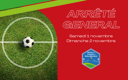 Compte tenu du nombre d’arrêtés municipaux reçus, le DFSM a pris un arrêté général pour l’ensemble des compétitions de ce week-end 1 et 2 novembre 2025. Cet arrêté concerne l’ensemble des compétitions départementales sur terrains herbes et synthétiques.