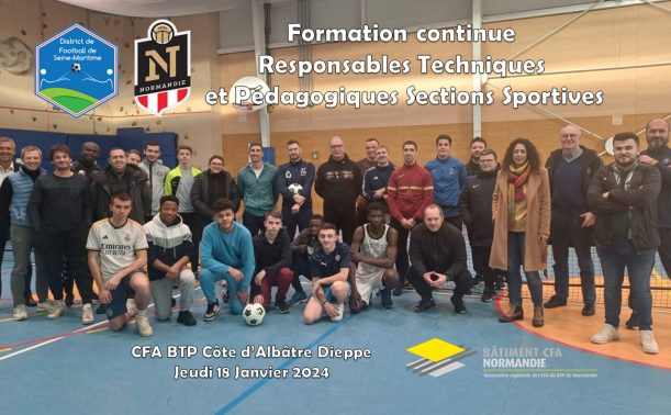Jeudi 18 Janvier 2024 avait lieu au CFA BTP Côte d’Albâtre de Dieppe (Martin-Eglise) une journée de formation continue pour les responsables techniques et pédagogiques des sections sportives labellisées de Seine Maritime et de l’Eure.